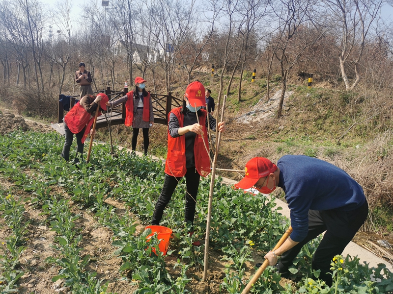 大家熱情飽滿、干勁十足、相互協(xié)作,一株新苗,一鍬厚土,一瓢清水,認(rèn)真種下一棵棵晚櫻樹(shù)苗。