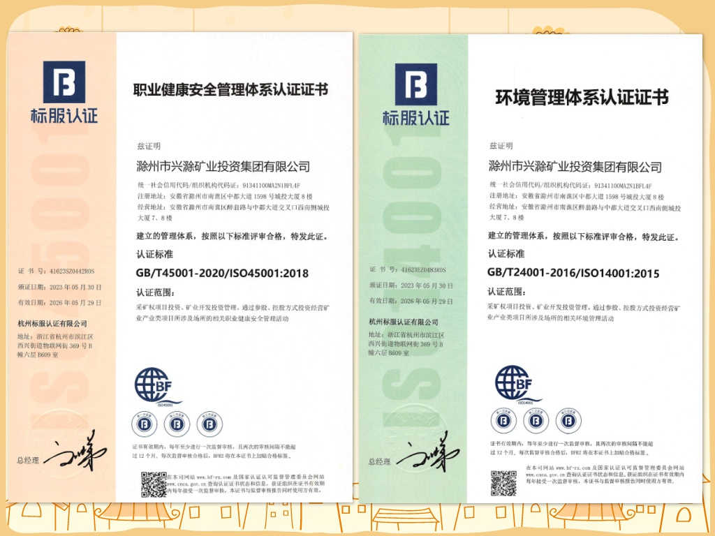 近日,市礦投集團(tuán)順利通過了ISO14001環(huán)境管理體系和ISO45001職業(yè)健康安全管理體系認(rèn)證,并獲認(rèn)證證書,標(biāo)志著集團(tuán)公司在安全及環(huán)保管理精細(xì)化、制度化、規(guī)范化方面邁上了新的臺階。