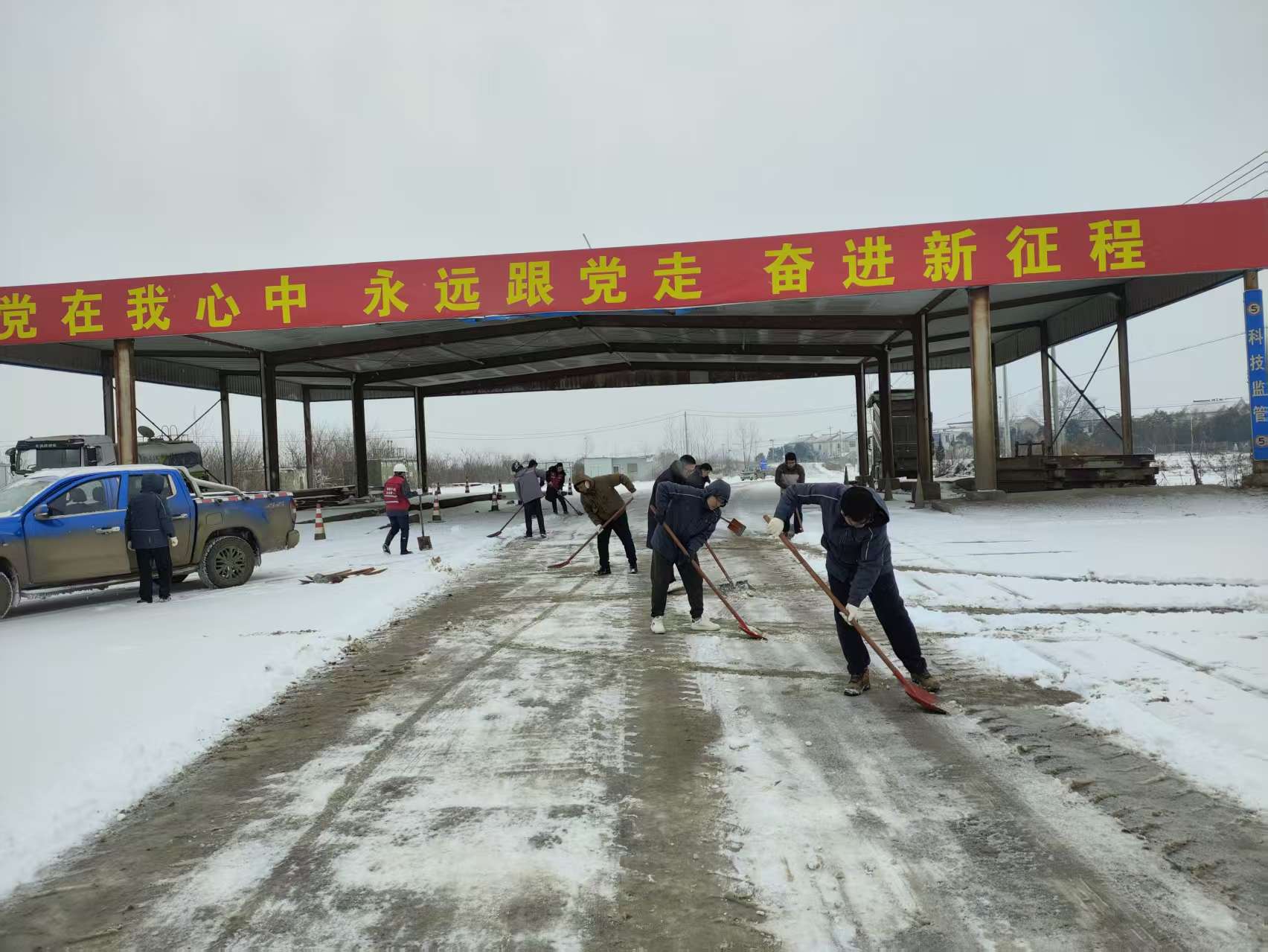 風(fēng)雪之中,集團各級黨組織迅速響應(yīng)。領(lǐng)導(dǎo)干部現(xiàn)場指揮,黨員骨干主動帶頭,職工群眾積極參與。在集團辦公區(qū)、各礦區(qū)主干道及設(shè)備集中區(qū)域,大家齊心協(xié)力,冒著嚴(yán)寒清掃積雪。重點對礦區(qū)關(guān)鍵通道、作業(yè)平臺和巡檢路線進行了清理,及時為安全生產(chǎn)和職工出行開辟安全通道。