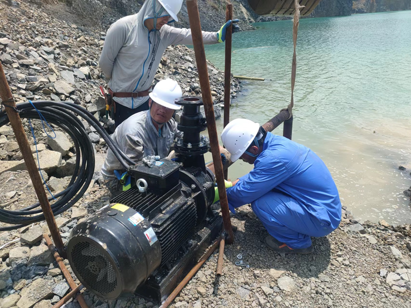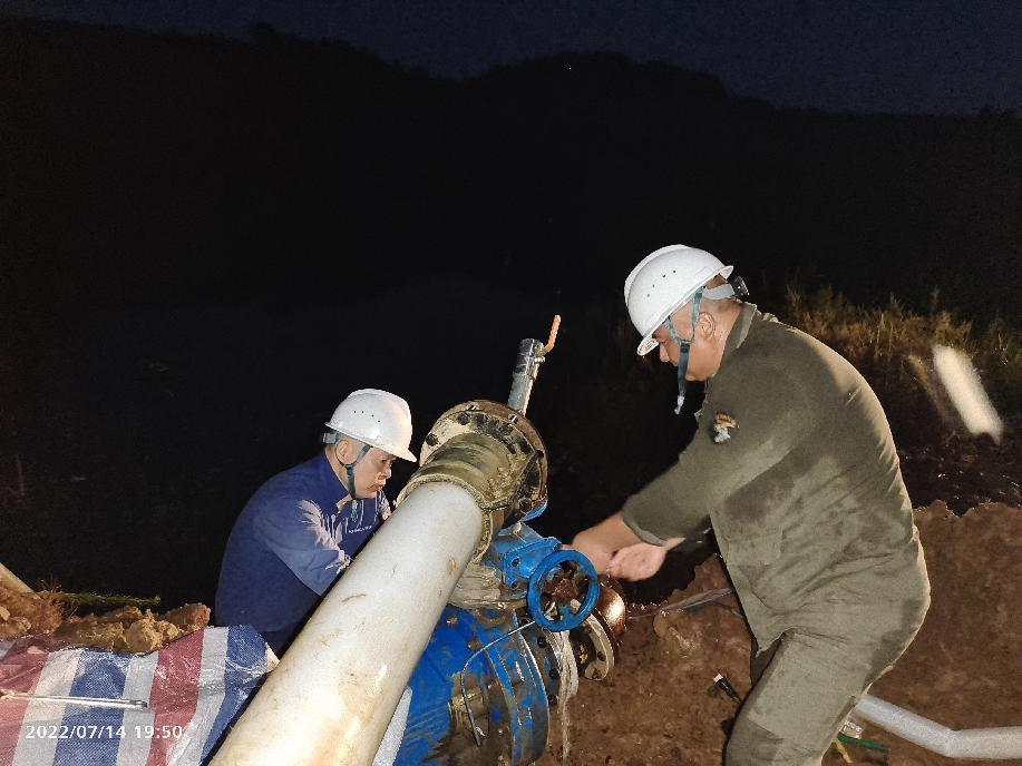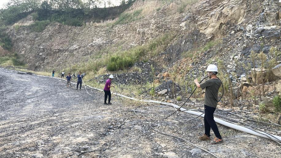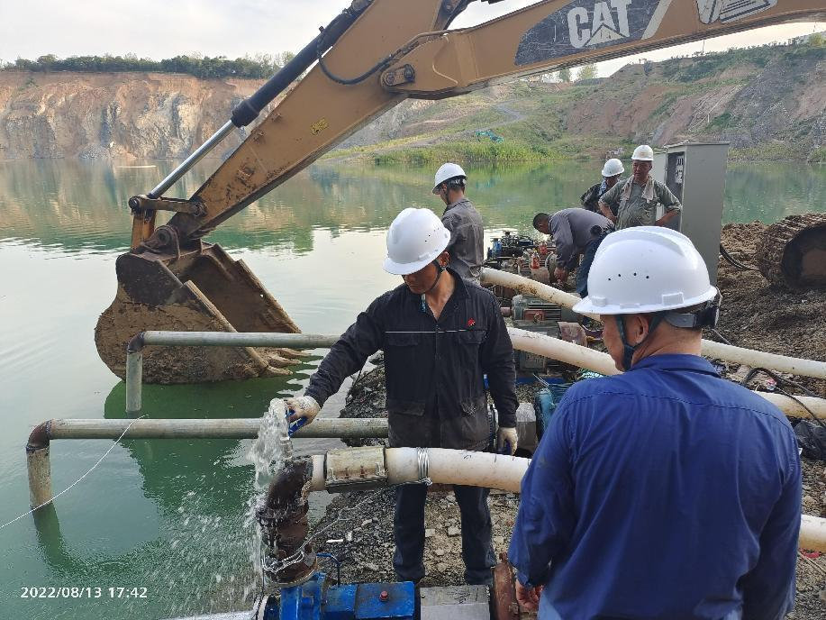 抗旱方案有了,可是要想把水從70米深的礦坑內(nèi)抽到地面,不但需要揚(yáng)程特別高的水泵,還需要高規(guī)格長(zhǎng)距離的水管和電纜,還有很多配套零部件要采購。旱情就是命令,抗旱就是責(zé)任,興天礦業(yè)副總經(jīng)理趙崗牽頭落實(shí)抗旱物資采購,親自指揮設(shè)備調(diào)運(yùn)安裝,帶領(lǐng)公司抗旱突擊隊(duì)和社區(qū)干部深入礦坑,一起研究水泵需要多大功率安裝在什么地方、水管需要多粗從哪里下放、電纜需要多長(zhǎng)從哪里接電等問題。方案制定好了,老百姓的水稻不能等,挖掘機(jī)第一時(shí)間進(jìn)場(chǎng)整理場(chǎng)地,興天礦業(yè)和社區(qū)準(zhǔn)備的水泵、水管電纜等也迅速到位,抗旱突擊隊(duì)與社區(qū)干部群眾一起與時(shí)間賽跑,從早到晚緊張施工,一心想著的就是早點(diǎn)把水抽上去,盡量把旱情影響降到最低。