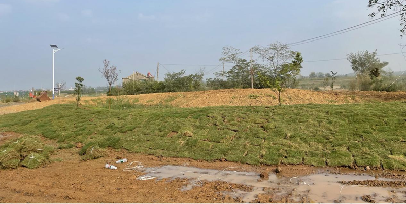 9月30日,公司員工為礦區(qū)鋪上了一層厚實的草皮。在大家辛勤汗水的澆灌下,短短數(shù)月之內(nèi),綠色就已經(jīng)成為這片土地上最耀眼的顏色。