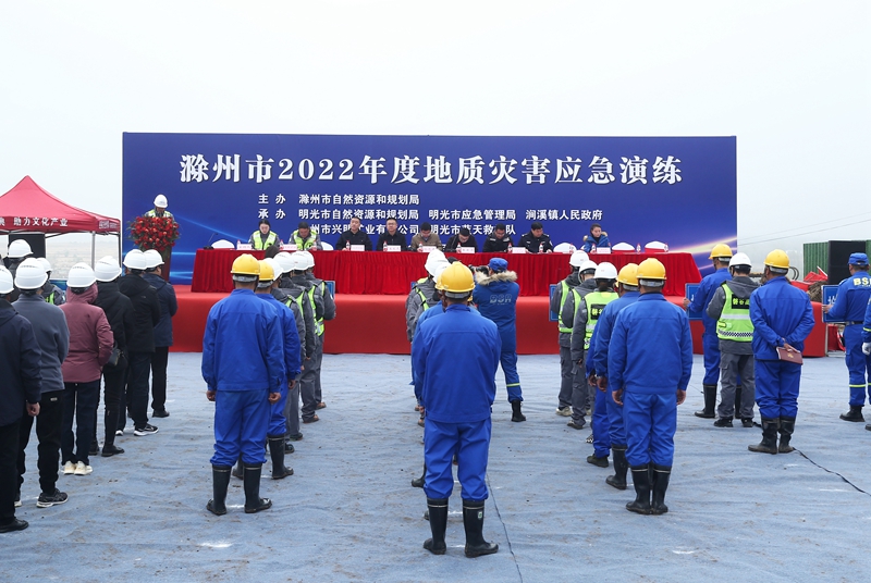 為進(jìn)一步做好地質(zhì)災(zāi)害防治工作,提高廣大人民群眾對(duì)突發(fā)地質(zhì)災(zāi)害的應(yīng)急反應(yīng)能力,強(qiáng)化防災(zāi)避災(zāi)意識(shí)。11月18日上午,滁州市2022年度地質(zhì)災(zāi)害應(yīng)急演練在滁州市興明礦業(yè)巢東礦區(qū)舉行,滁州市自然資源和規(guī)劃局地質(zhì)礦產(chǎn)管理科科長(zhǎng)孫忠民、生態(tài)修復(fù)科科長(zhǎng)朱慶濤,明光市應(yīng)急管理局局長(zhǎng)王大虎,明光市自然資源和規(guī)劃局副局長(zhǎng)張宗建,澗溪鎮(zhèn)人民政府副鎮(zhèn)長(zhǎng)孟慶德參加,滁州市各縣區(qū)自然資源和規(guī)劃部門(mén)礦政、生態(tài)修復(fù)管理人員45人應(yīng)邀到場(chǎng)觀摩。